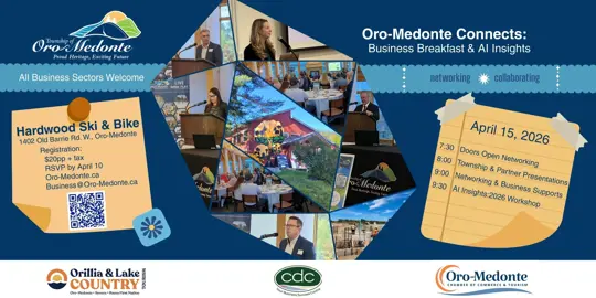 The Township of Oro‑Medonte is pleased to invite local business owners, entrepreneurs, and community partners to Oro‑Medonte Connects: Business Breakfast & AI Insights, a morning event focused on connection, collaboration, and learning.
